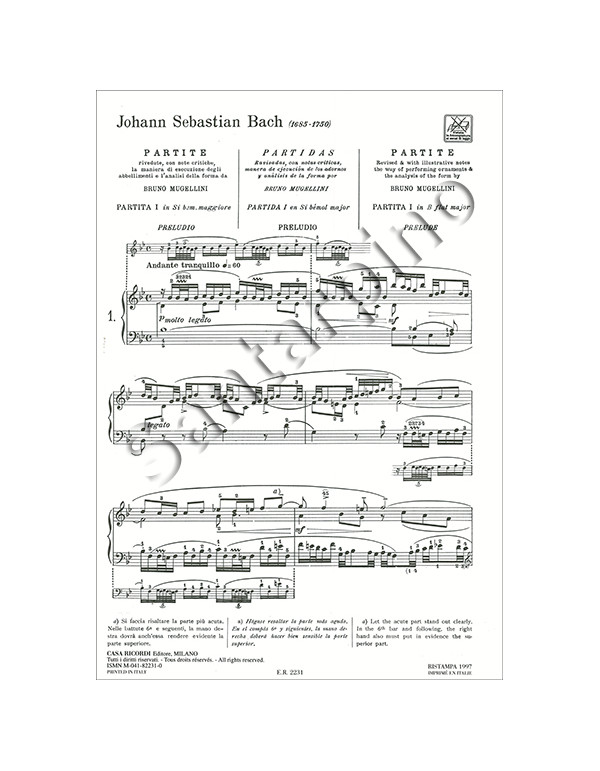 4 PARTITE E OUVERTURE FRANCESE PER PIANOFORTE – BACH