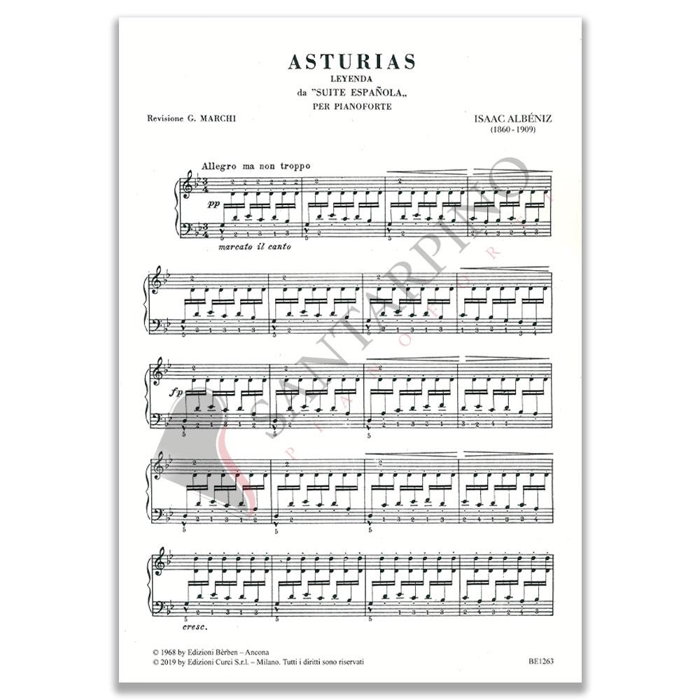 Asturias (Leyenda) di Isaac Albéniz, nella versione per pianoforte edita da Edizioni Berben, è un brano di grande impatto stilistico ed evocativo, parte della Suite Española Op. 47. Questa composizione è nota per il suo carattere virtuosistico e per l’abilità di Albéniz di trasporre lo spirito del flamenco spagnolo sulla tastiera.