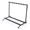 Rastrelliera per 7 chitarre e/o bassi. Tutte le parti dove appoggiano gli strumenti sono rivestite in gomma naturale. Gancio di sicurezza antiribaltamento.