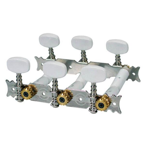 Set meccaniche per chitarra classica, perno in in nylon, 3L + 3R, 70mm, in nichel, pioli con finitura plastica.