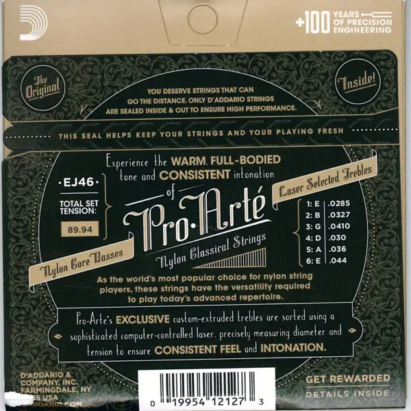 Le corde per chitarra classica più famose al mondo sono le corde di altà qualità D’Addario Pro-Artè. Tutte le corde alte Pro-Artè sono analizzate da una sofisticata macchina laser controllata da computer che esegue misurazioni di diametro e tensione, assicurando corde precise in ogni set. Le Pro-Artè basse sono avvolte con rame placcato in argento su un nucleo di Nylon multi-filamento per un suono coerente e caldo.