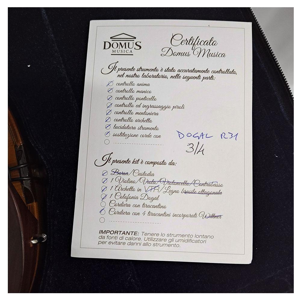 – Custodia: Una custodia protettiva è di norma fornita per garantire la sicurezza del violino durante il trasporto.