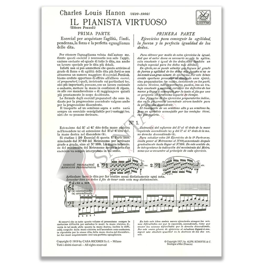 Raccolta di 60 esercizi progressivi per pianoforte, ideata da Charles-Louis Hanon e curata da Ettore Pozzoli per l’edizione Ricordi. Il metodo è pensato per sviluppare agilità, forza e indipendenza delle dita, ed è ampiamente utilizzato in corsi preaccademici e accademici.