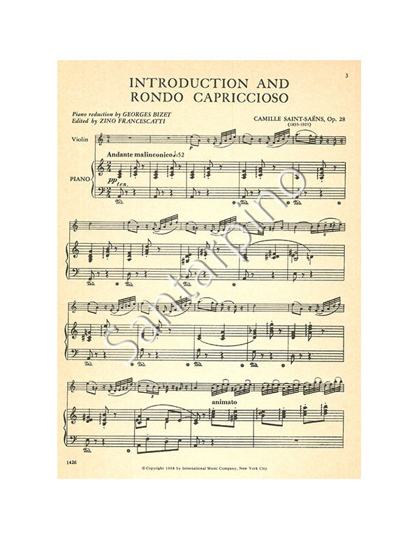 INTRODUCTION AND RONDO CAPRICCIOSO OPUS 28 FOR VIOLIN AND PIANO – SAINT-SAENS