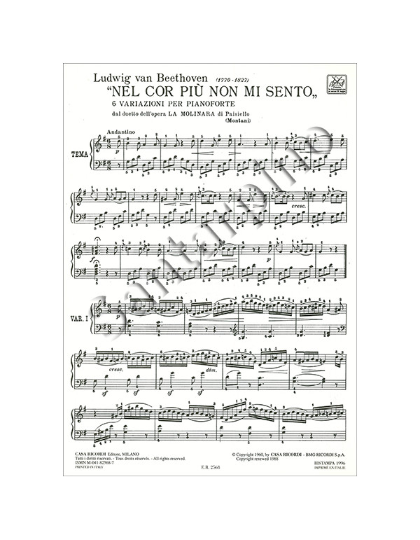 NEL COR PIU NON MI SENTO PER PIANOFORTE – BEETHOVEN