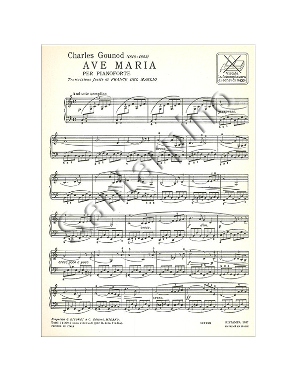 PERLE MUSICALI AVE MARIA PER PIANOFORTE – GOUNOD