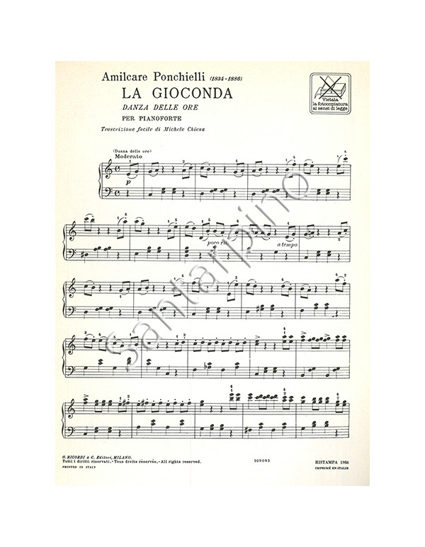 PERLE MUSICALI DANZA DELLE ORE PER PIANOFORTE – PONCHIELLI