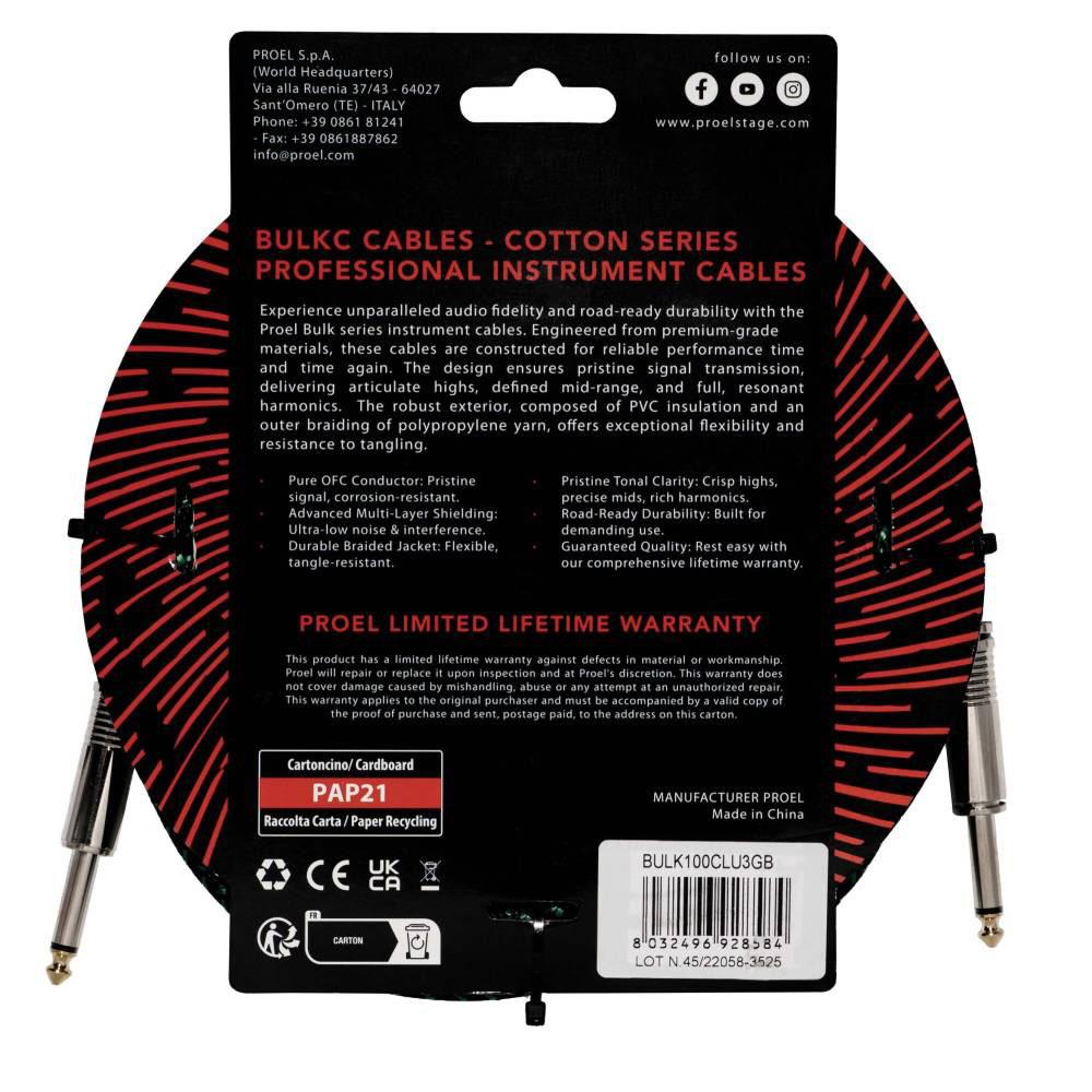 PROEL Bulk100CLU3GB Cavo Jack/Jack per Strumenti 3 m Nero e Verde