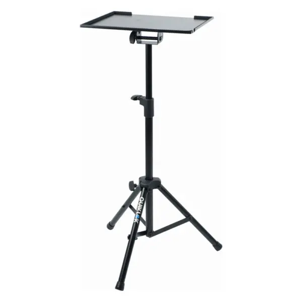 Supporto multifunzionale semplice e comodo. Regolabile in altezza, inclinazione orizzontale e verticale. Utilizzabile anche per laptop di dimensioni superiori allo standard. Comodo come veloce appoggio per expander, processori, piccole percussioni, accessori, fascicoli di partiture musicali di fianco al leggio. Il bordo rialzato previene cadute accidentali e aperto al centro, nel lato lungo, per facilitare eventuali connessioni anteriori alle apparecchiature in uso.