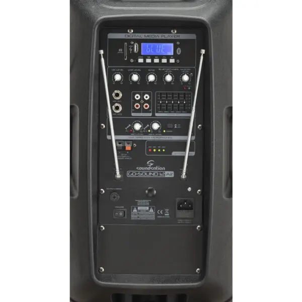 Soundsation Go-Sound fa un altro passo avanti e diventa Go-Sound Air. Mantenendo tutte le funzionalità della precedente serie Go-Sound AMW (alimentazione a batteria o corrente, trolley con manico telescopico, due microfoni wireless VHF, Player con USB/SD-card/BT, Ingressi Mic/Line, effetto Eco, EQ a 5-Bande, ecc.), è ora possibile controllare il lettore multimediale e l’ingresso stereo Aux tramite la nuova app “Go-Sound Air” per dispositivi Android® e iOS® (scaricalo da Google Paly® o AppStore®). Non è mai stato così facile suonare e controllare le tue playlist preferite dal tuo telefono cellulare o tablet: collega il diffusore all’app tramite connessione BT e il gioco è fatto. Così come per la precedente serie AMW, la batteria dura da 2,5 ore (volume massimo e carica completa) a 4 ore (volume normale, carica completa). Entrambe le versioni da 12″ e 15″ sono dotate di amplificatore in classe-AB che offre fino a 800W di picco (quando collegato alla rete elettrica). Il cabinet è in polipropilene robusto e leggero con griglia metallica e foro per palo o treppiedi standard da 36 mm.