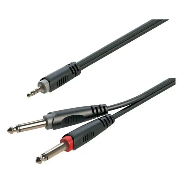 Il cavo adattatore Soundsation SJJJ-50BK è lungo 5 metri e presenta un connettore jack stereo maschio da 3,5 mm che si dirama in due connettori jack mono maschio da 6,3 mm. Realizzato con rame privo di ossigeno (OFC), garantisce una trasmissione di alta qualità. Il cavo ha un diametro di 4,0 mm x 8,0 mm e una schermatura in rame a spirale al 90% per ridurre i disturbi. I connettori sono pressofusi, isolati e schermati individualmente per garantire flessibilità e affidabilità in diverse applicazioni.
