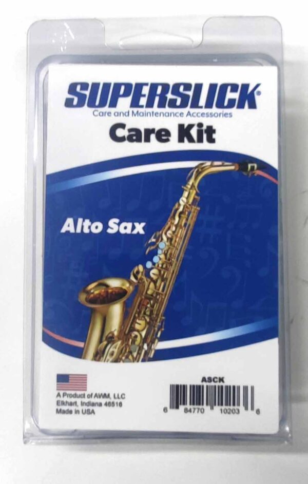 Un kit utile per la pulizia e la manutenzione del sax alto, completo di tutti gli articoli necessari.Il kit contiene un panno in cotone per la pulizia esterna, due spugnette di dimensioni diverse per la pulizia interna, grasso per sugheri Superslick, porta ance Faxx, spazzolino per la pulizia del bocchino, spazzolino/scovolino per chiavi.