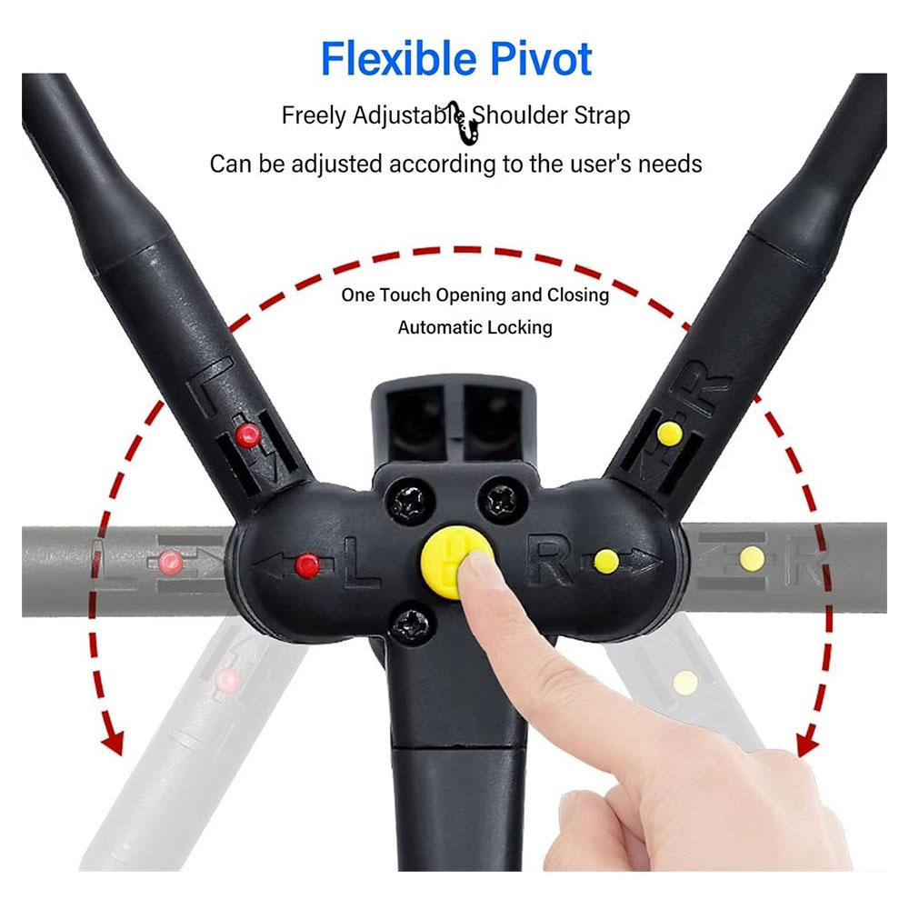 Il design ergonomico distribuisce il peso in modo uniforme sulle spalle grazie al supporto imbottito e alla struttura con supporto girevole a 360°, riducendo l’affaticamento durante lunghe sessioni di pratica o performance dal vivo.