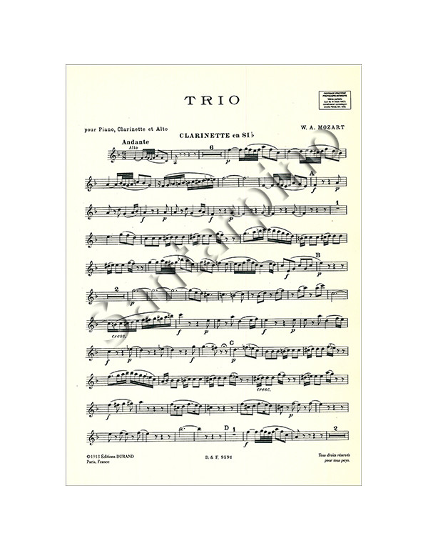TRIO POUR PIANO CLARINETTE ET ALTO – MOZART